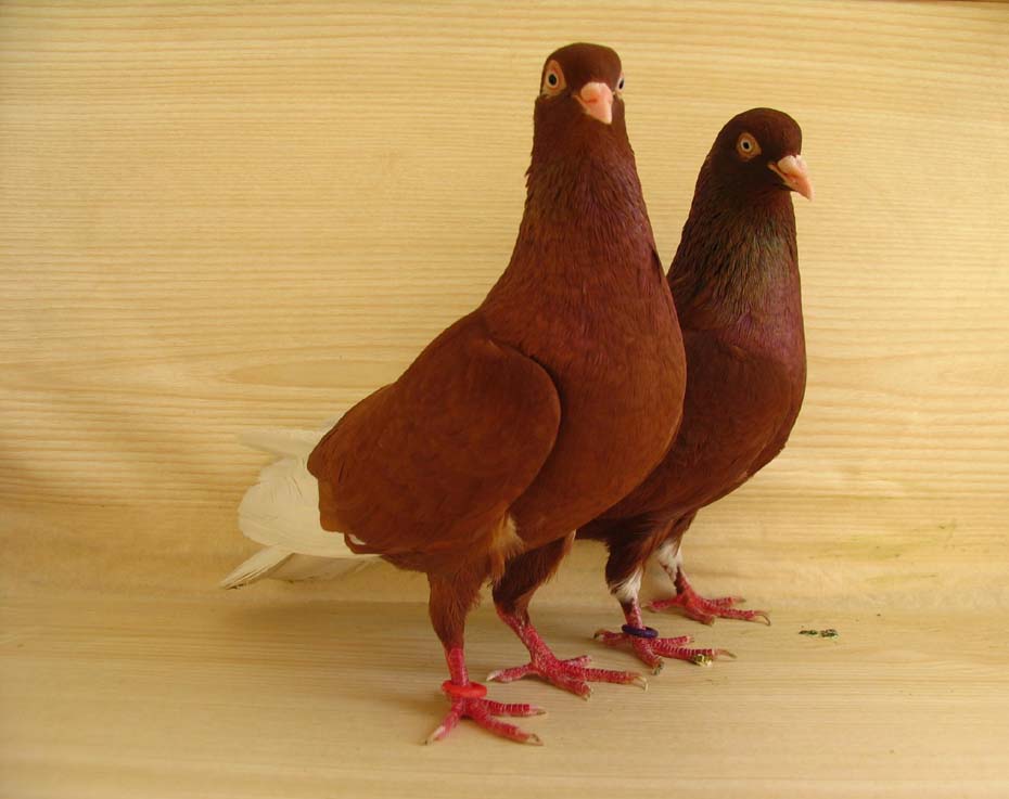 Bu güvercinlerin renk olarak sarı ve kırmızı olmak üzere iki tipi bulunmaktadır. Her tipin ise, akkuyruk ve akkanat akkuyruk olarak iki ayrı çeşidi vardır.