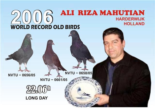 C:2000 yılında genç kuş yarışmasında benim kit 20.05 uçtu fakat ışıkları açtıktan sonra 3 kuşumdan ikisi indi ve 3 üncü kuşum inmedi karanlığa daldı kurallara gore diskalifiye oldum sabah 3.00 a kadar uçtu ve dünya rekorunu kıramadım iyi bir uçuş süresi 20.05 olarak kaldı.Diğer deneme için bir yıl bekledim.2001 yılında yarış günü hava çok kötüydü fırtına vardı ve oldukça kuvvetli yağış vardı hakem sık sık aynı şeyi tekrarlıyordu kuşların bu havada uzun sure uçması mümkün değil ancak kötü havalarda kuşlarımın kalitesini biliyordum.Oldukça sakindim ve bunu yapabileceklerini biliyordum.Bir yıl sonra onlar genç kuşlar dünya rekorunu korkuç havaya rağmen 2001 de 19.55 ile kırdılar.Sonra kart kuşlarda dünya rekoru kırmak amacıyla kart kuşlarımı hazırladım fakat kulübümle birçok problem yaşadım kıskançlık ve ayırımcılık hissettim. Ben ve diğer NVC nin üyesi Shahini diğer yarışa katılan bazı üyelere gittik ve yarışa katılan kuşların hiç uçmamış gibi taze gözüktüklerini gördük bu yüzden o üyelerin bütün aktivitelerini filme aldık ve kulübün dikkatine sunduk ancak kulüp tüm bunları görmemezlikten gelerek bu filmleri dikkate almadı bu üyelerin uçuşlarını kabul etti.Ve 5 kuştan oluşan genç kuş kitim uzun gün uçuşunda 20.31 uçmasına rağmen sayılmadı çünkü NVC bana haber vermeden uzun gün uçuşunu iptal ettiğini daha sonra bana iletti.Bir çok NVC üyesi bu davranışlardan çok rahatsız oldu.Bazı üyeler bu yüzden NVC yi terkederek yeni bir kulüp kurdular ve bende onları takip ettim kurulan kulübün kuralları yani yarış kuralları NTU ile aynıydı. 2 yıl içinde aktiviteler diğer kulüpte başladı yani 2006 yılına gelmiştik ben kart kuşlarda dünya rekorunu kırmaya gittim kart kuş kitimi sabah 4.00 da saldım ertesi gün sabah 2.06 da ışıkları açtım risk almak istemedim kuşlar daha fazla uçabilse dahi önemli değildi bu uçus süresi ile dünya rekorunu kırdığımı biliyordum.Uçusu sonlandırdım dropperları çıkardım ve birkaç dakika içinde kiti kümese aldım.Eğer kuşlar bu kadar uçmasalardı çok taze gözükürlerdi